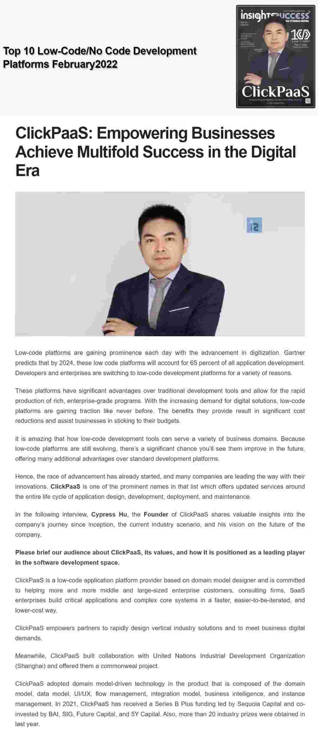 2022年年初,,,,NO钱包入选外媒Insights Success低代码/无代码开发平台 Top10,,,创始人、、、CEO胡柏受邀接受专访并荣登封面人物,,,他与Insights Success的读者分享了NO钱包成立的初心、、、、发展历程、、当前的行业发展趋势以及他对公司未来的展望。。。
