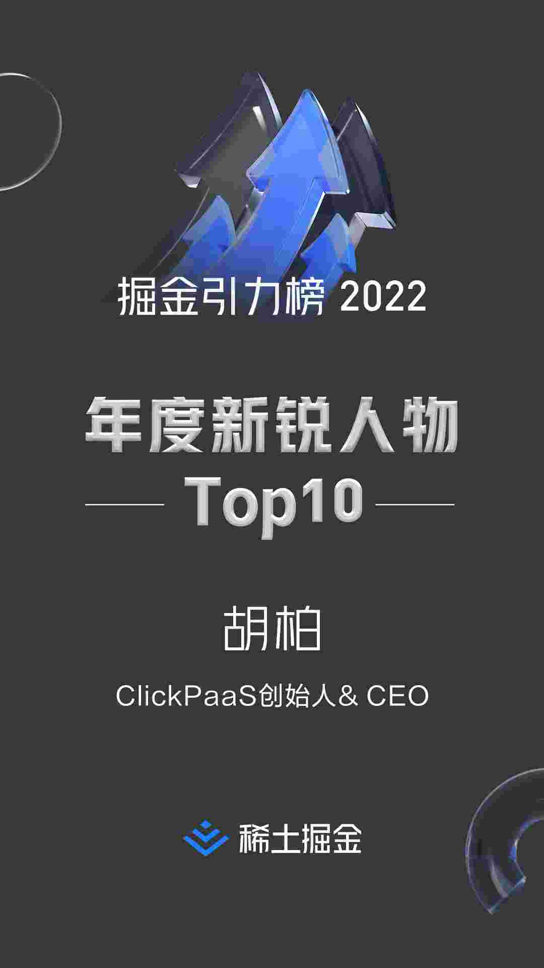 2022年1月6日,,,,稀土掘金社区第一届「掘金未来大会」成功举办,,会上发布了“2022 稀土掘金引力榜 年度新锐人物”榜单,,,上海爱湃斯科技有限公司(简称NO钱包)创始人及CEO胡柏实力入选年度新锐人物TOP 10。。。
