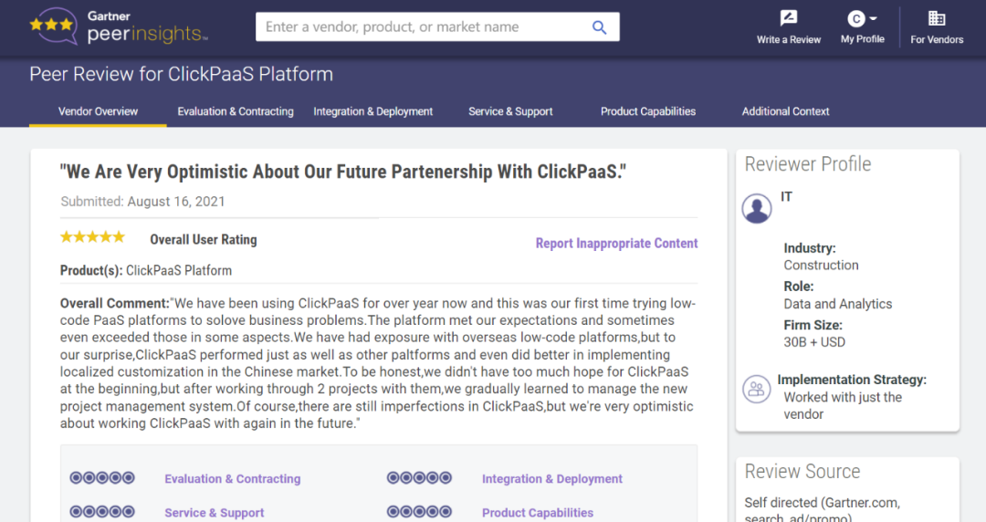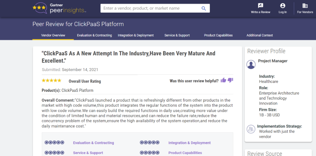Tips::::【Peer Insights】——用户对企业IT产品和服务发布真实评价的平台。。。。目前已有355个市场,,,255,000条经过验证的评价。。。。每一条评价Gartner会针对参评企业营收规模及参评人员信息做验证、、、评价内容做多维核实。。。。